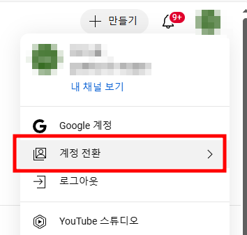 로그인 후, 우측 상단의 프로필 사진을 클릭한 뒤 여기서 "계정 전환"을 선택합니다.