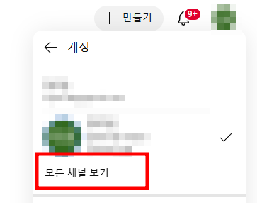 채널을 생성 한 뒤 다른 채널로 전환하고 싶다면 프로필 사진 클릭 후 계정 전환 탭에서 전환하면 됩니다.