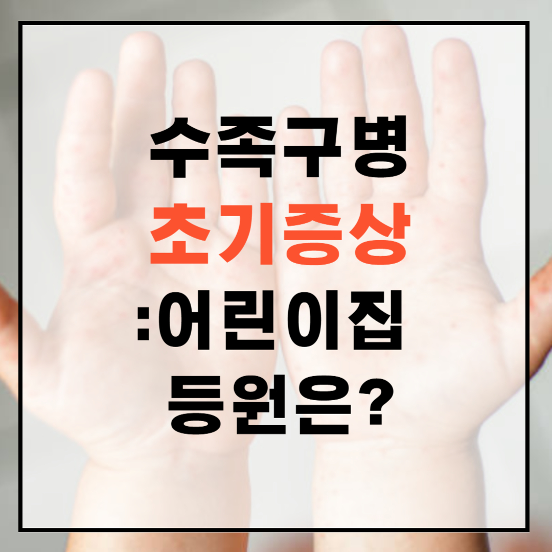 집에 어린이집이나 유치원을 다니는 아이가 있다면 영유아들 사이에서 유행하는 질환에 대해 걱정이 많을 텐데요. 그중에 수족구는 바이러스성 질환으로 한명이 걸리면 집단으로 감염되기 쉽습니다. 이 글에서는 수족구병 초기증상과 전염기간, 어린이집 등원 시기에 대해 알아보겠습니다.