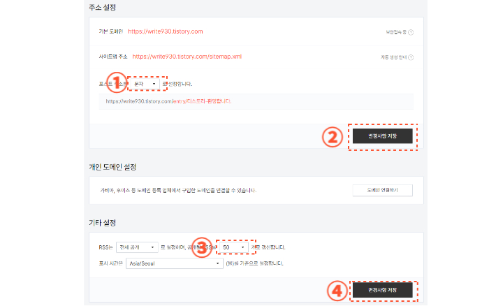 - 초기에 세팅하는 경우가 아니고 숫자 주소로 블로그 운영 중이라면 도중에 문자로 바꿀 필요는 없습니다.
