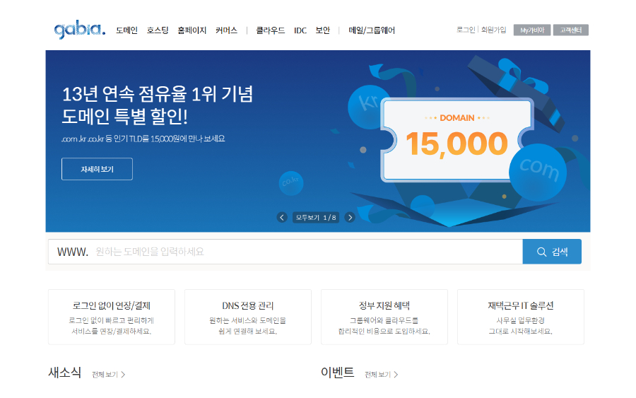 카페24, 가비아, 후이즈 등 도메인을 구매할 수 있는 곳은 다양합니다.