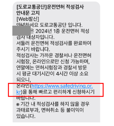도로교통공단으로 부터 받은 문자에 적혀있는 링크를 누릅니다.