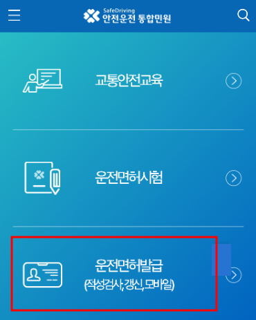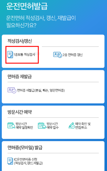 '운전면허발급(적성검사, 갱신, 모바일)' 메뉴 선택