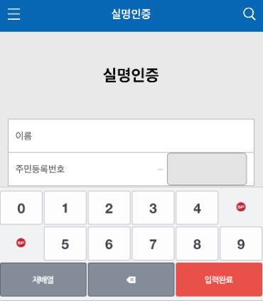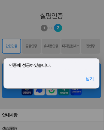 이름과 주민번호 입력 후 본인인증 (카카오페이, 공동인증서, 디지털원패스 등)진행