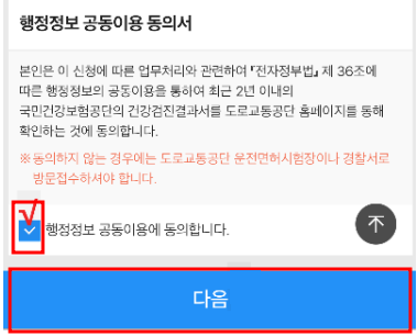 건강검진 결과를 자동으로 확인하는 것을 동의하는 과정입니다.