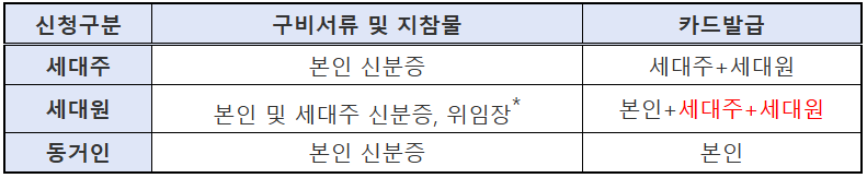 - 주민등록등본(가족 단위 신청 시 필수)